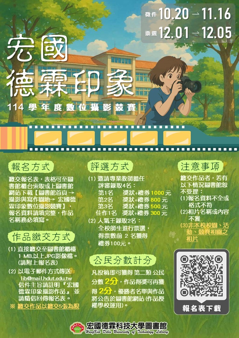 ※ 優勝者名單與作品將公告於圖書館網站,作品授權學校運用。